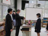 次に1年生に、子ども赤十字のワッペンが贈呈されました。