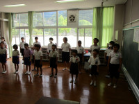 音楽の時間に合奏の発表がありました。学級担任や校長先生・養護教諭も参加して発表を聞きました。